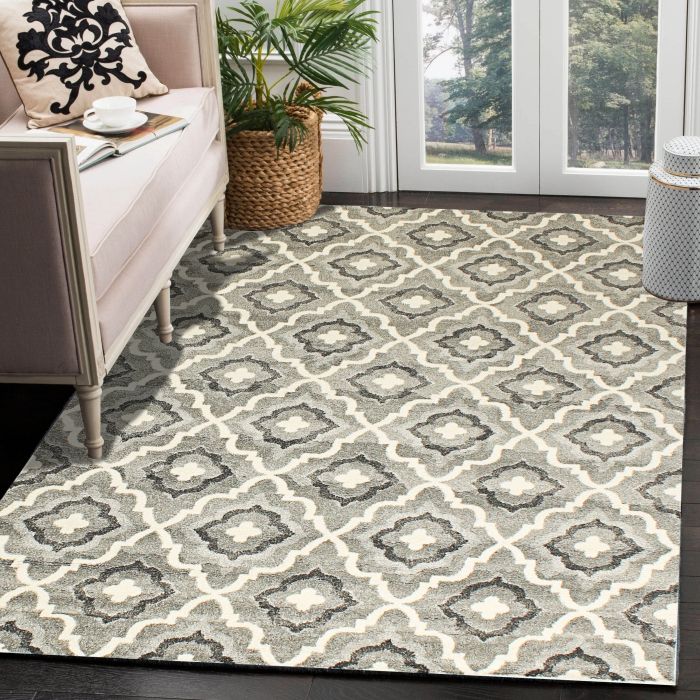 Description / Rugsville Adolfus Moroccan Gray Geometric Modern Carpet 5'3" x 7'7"