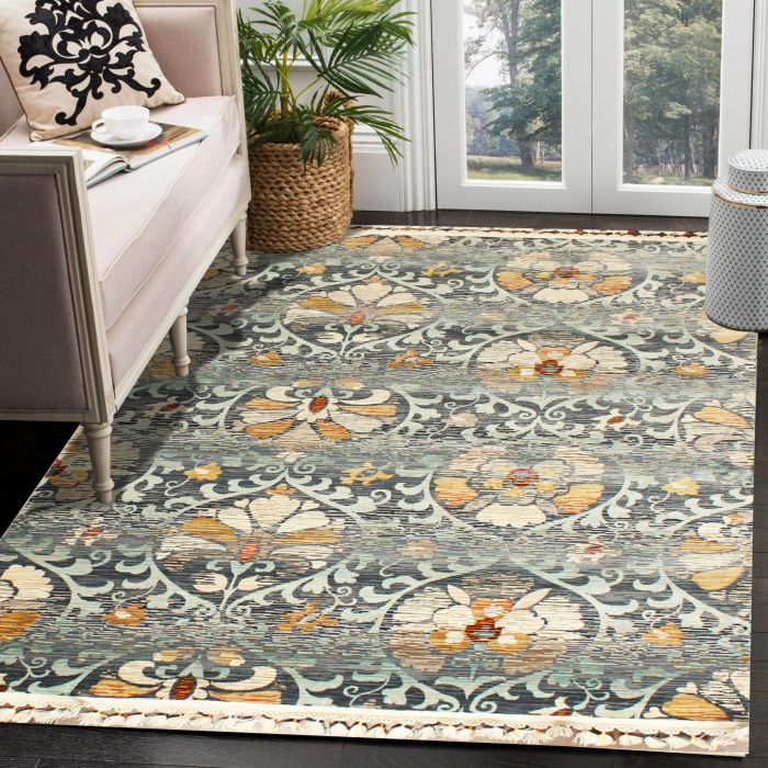 Description / Rugsville Alp Gray Floral Modern Carpet 5'4" x 7'10"