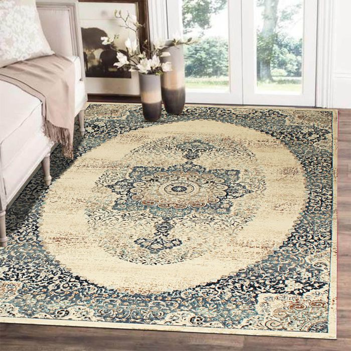 Description / Rugsville Ana Medallion Ivory Gray Persian Carpet 5' x 7'7"