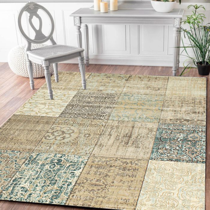 Description / Rugsville Atil Multi Patchwork Modern Carpet 5' x 7'8"