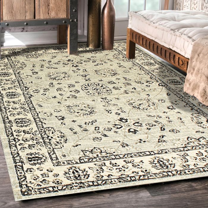 Description / Rugsville Eberly Ivory Floral Persian Carpet 5'3" x 7'8"
