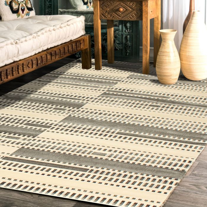 Description / Rugsville Emre Gray Beige Graphic Modern Carpet 5'3" x 7'4"