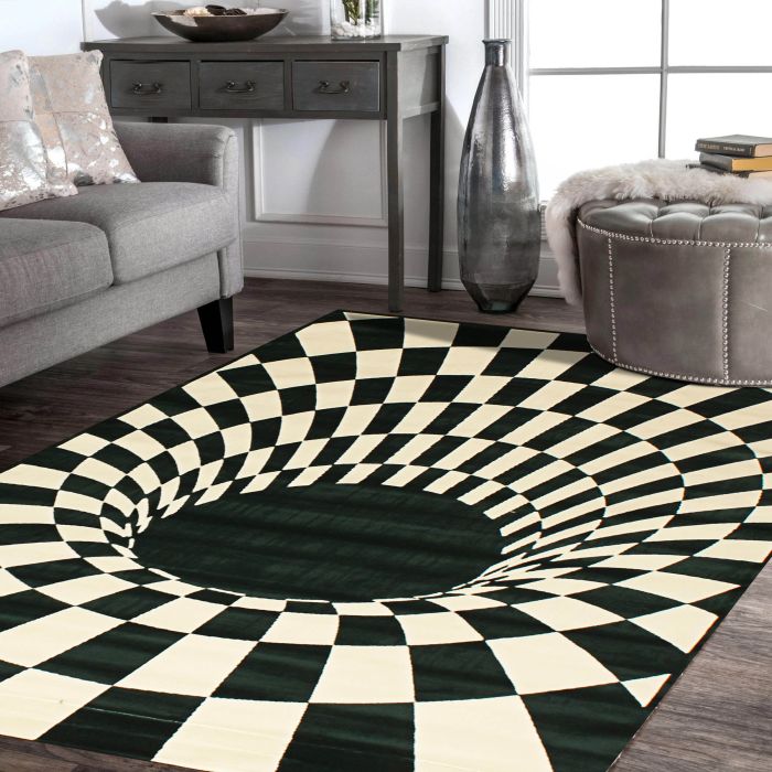Description / Rugsville Hypno Black & White Graphic Modern Carpet 5'3" x 7'4"