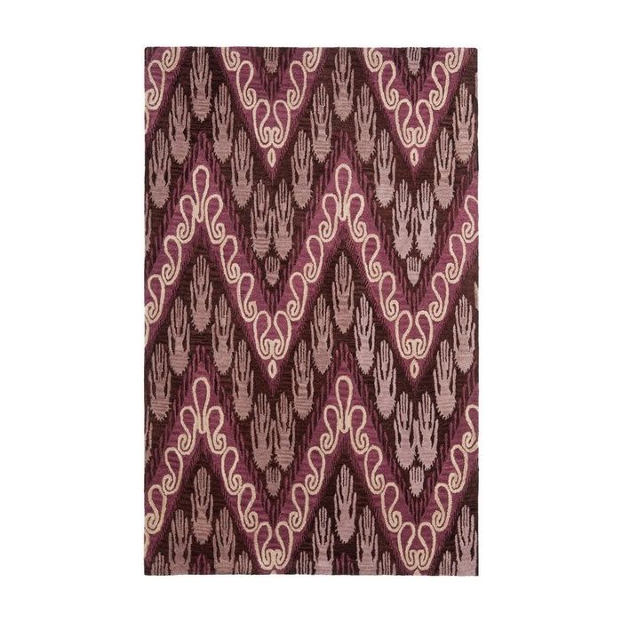 Description / IKAT Dark Brown Purple Bohemian Handmade Wool Carpet