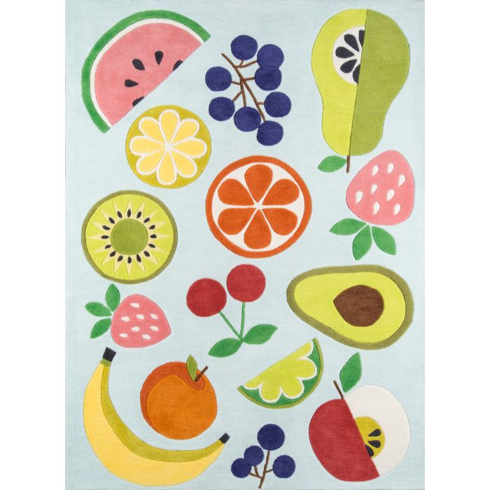 The colorful characters throughout this modern area rug collection take a fashion-forward approach to fun and frolic. Hand tufted from plush polyester threads, each multicolor carpet uses a vivid color palette and sculptural accents to shape kid-friendly designs that range from a cornucopia of fruit to a garden of floral stems to a graphic fighter plane pattern. The contemporary rug assortment also includes inspired styles with a nod to academia, with alphabet letters and abacus beads that perform decorative double duty as an educational tool.
