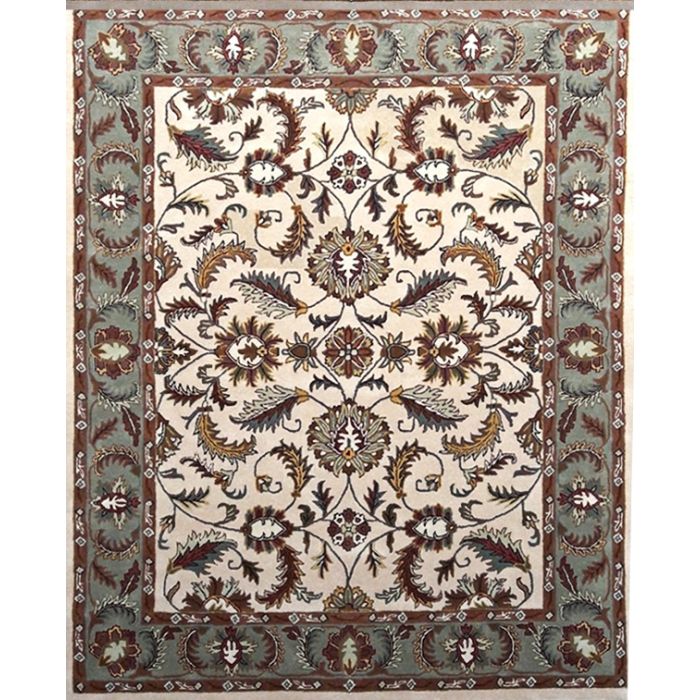 Liona Traditional Floral Beige Wool Handmade Persian Carpet 8' x 10'