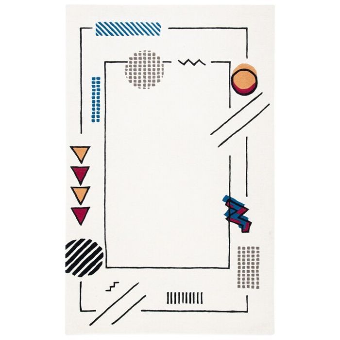 Description / Neoteric Ivory Sky Blue Modern Handmade Wool Carpet