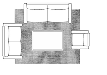Leave at least 24” of room between the backs of the chairs and the edges of the carpet.