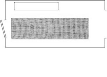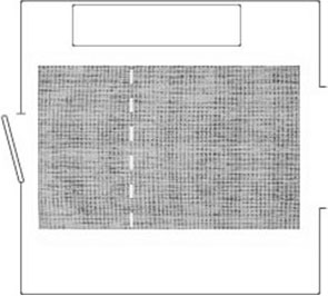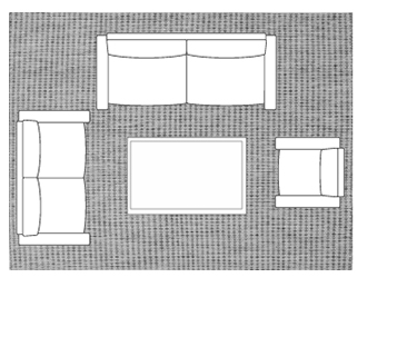 If the opening of the door is obstructed by the carpet, use a runner or 3’ x 5’ carpet centered in the space instead.