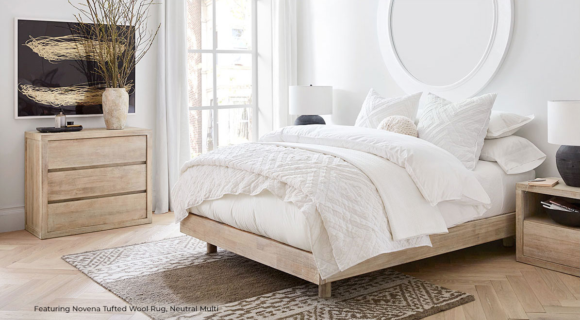 For larger rooms or beds, consider a carpet that can also comfortably fit your nightstands.