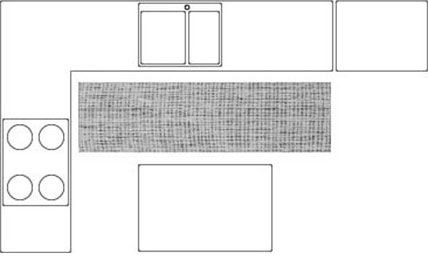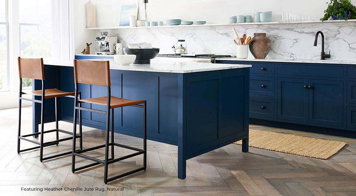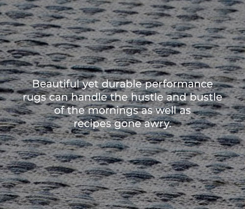 Place a 2.5’ x 8’ runner on one side of a kitchen island or in a galley kitchen.
