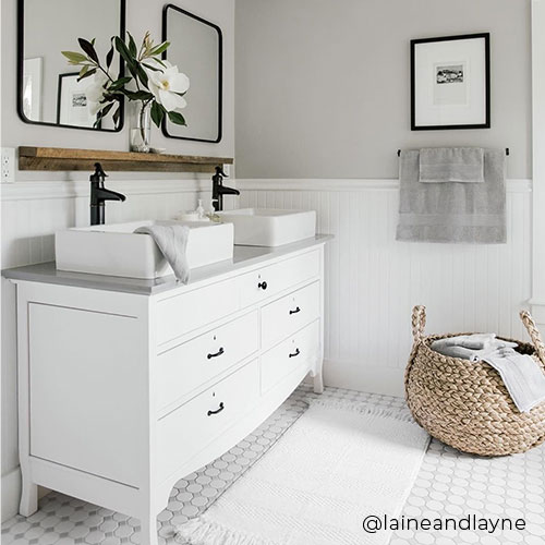 For larger vanities, place carpets at the foot of every sink or use one long runner.