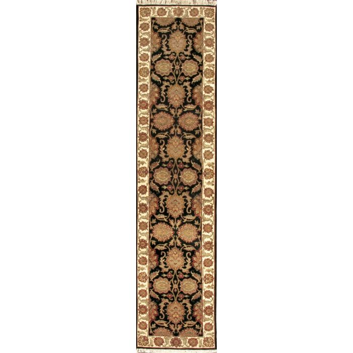 Description / Rugsville Agra Persian Floral Black Beige Wool Carpet 2'6"x12' Runner