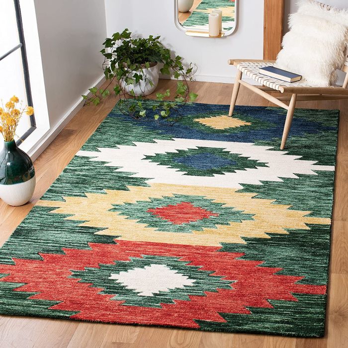 Tuscan Green Multi Bohemian Handmade Wool Carpet