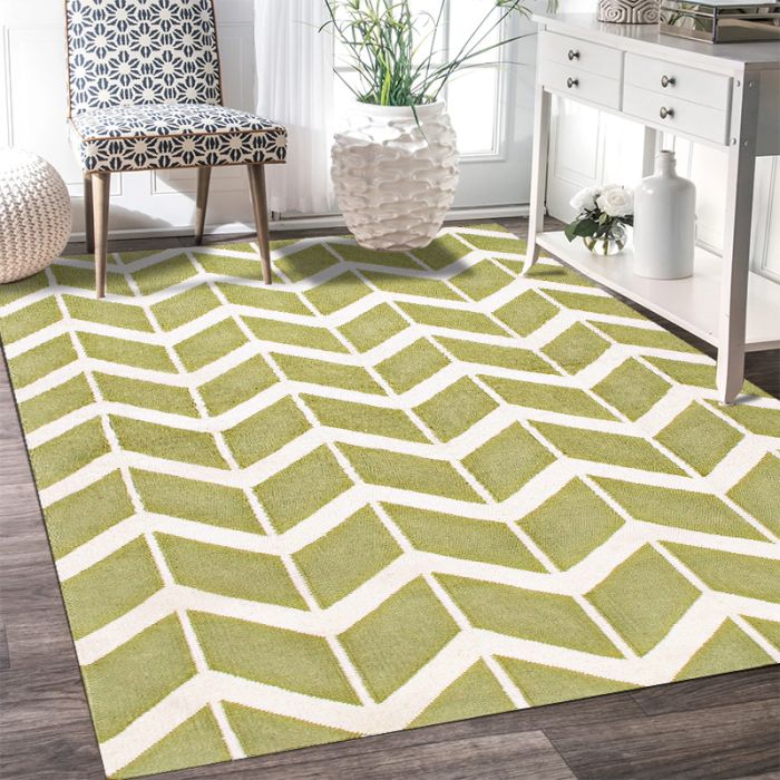 Description / Rugsville Chevron Green Wool Dhurrie Carpet 13713
