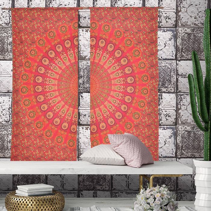 Add a new designer mandala tapestry curtains for your living area .Tapesty is multipurpose use for wall handgings,table cover , bedcover for decoring your area, which can be match from your Living area. We also provide matching tapestry for wall hanging. This is made from Fine cotton fabric and available in different mandala patterns with colour variations. These curtains are 100% fine cotton made where we can decore on same theme. These simple fine cotton tapestry curtain gives a Gougius look to you Home. We can use these 7 feet curtain as window curtains, Door curtains and these are easy to install on single panel .