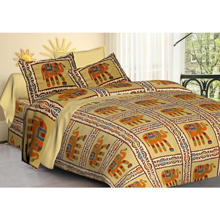 Enhance the beauty of your bedroom with Floral printed bedsheet in beautiful Blue,Brown,Beige colours,soft & comfortable Cotton from Rugsville Elfenfolk collection. The bedsheet is made from Fast Natural Dyes for durability & long lasting. Each set comes with 1 bedsheet and 2 pillow cover .