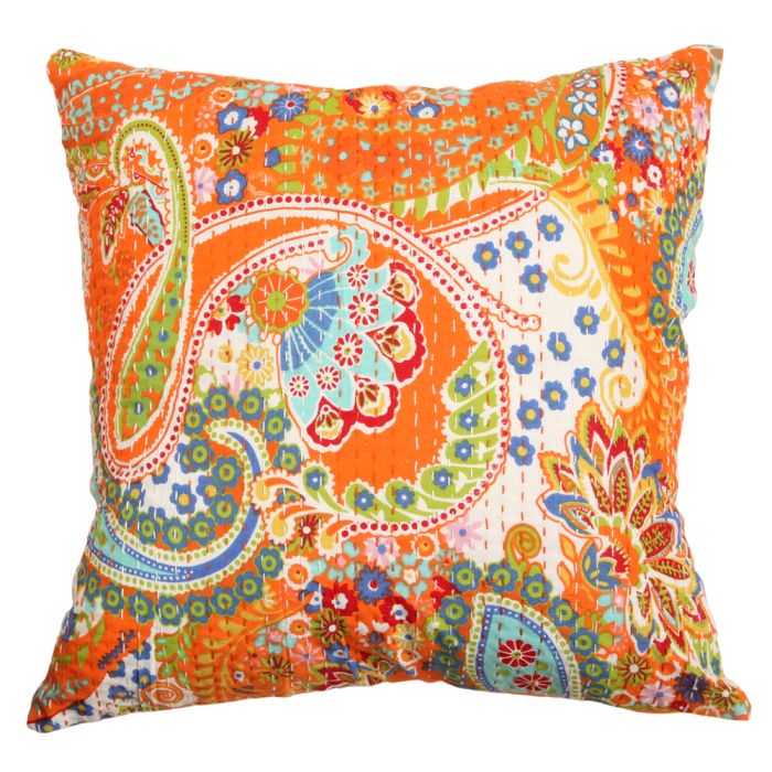 Description / Rugsville Ethnic Kantha Floral Orange Cushion cover 16"x16"