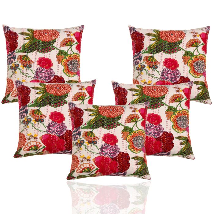 Rugsville Ethnic Kantha Floral White Cushion cover 20" Square 5Pc set High Quality Cushion cover set .