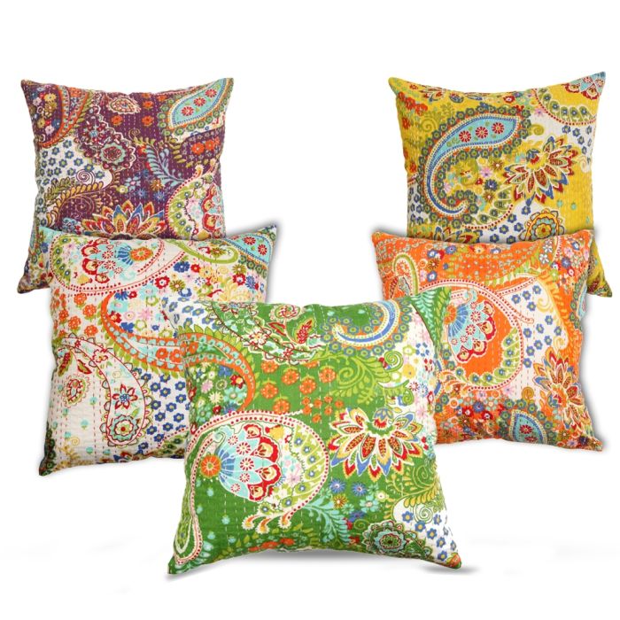 Description / Rugsville Ethnic Kantha Paisley Assorted Cushion cover 18"x18" 5 pc Set