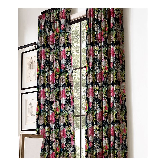 Rugsville Floral Kantha Cotton Black 7 feet Eyelet Fruit Curtain