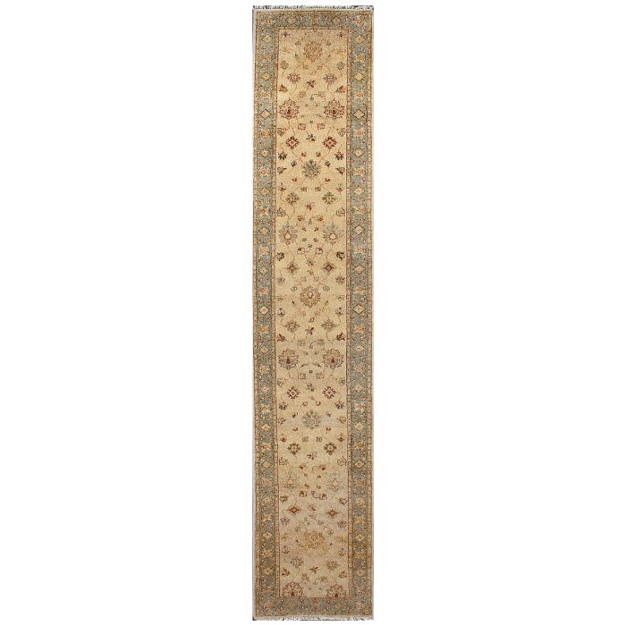 Rugsville Floral Ivory Blue Wool Ziegler Carpet 2'6" x 15'