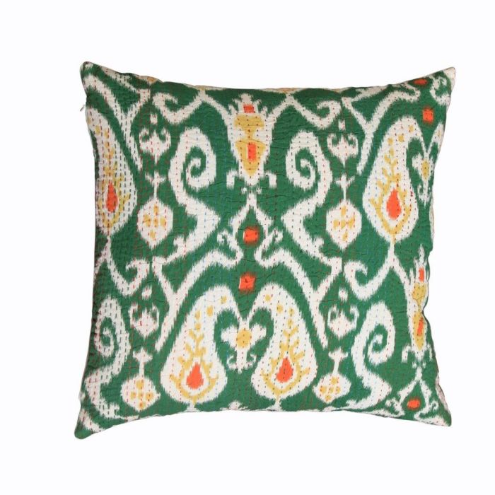 Description / Rugsville Kantha Ikat Green Cotton Pillow Cover 16" x 16"
