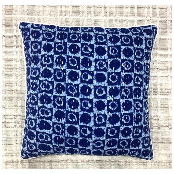 Rugsville Liam Dot Indigo Print Kantha Pillow cover 16" x 16"