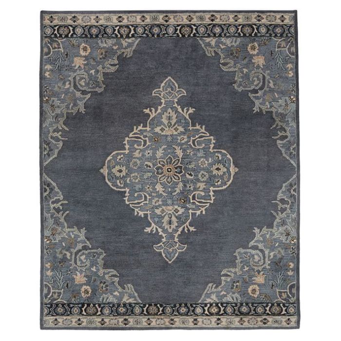 Description / Bryson Persian Medallion Handmade Blue Wool Carpet