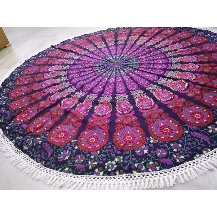 - Features: - Also Perfect to Take Along to a Picnic or to the Beach. For Your Comfort it is Hand Printed on 100% Cotton. Ethnic Feel to Your Room with This Cotton Handmade Wall Hanging Picnic Blanket, Bed Cover, Table Cloth, Beach Towel, Yoga Cloth Beach Blanket, Curtain Dimension: - Twin/Rounded Tapestry. Measures 50" Inches Approx. This conventional piece of art will make complete makeover of your wall or room or bed.