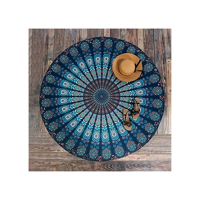 Description / Rugsville Mandala Bohemian Psychedelic Beach Yoga Picnic Throw Towel Peacock Wing Blue Round Tapestry 72 inches