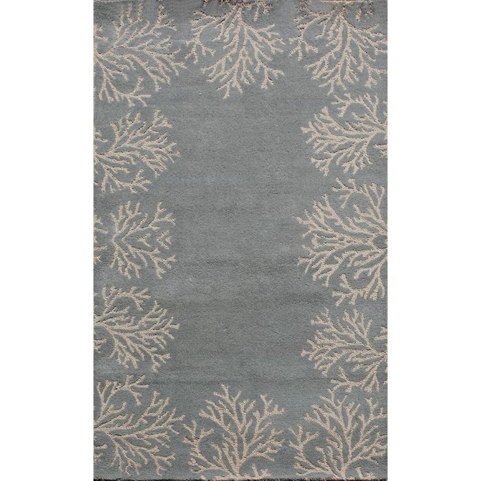 Description / Rugsville Coral Bordered Handmade Blue Wool Carpet 8' x 10'
