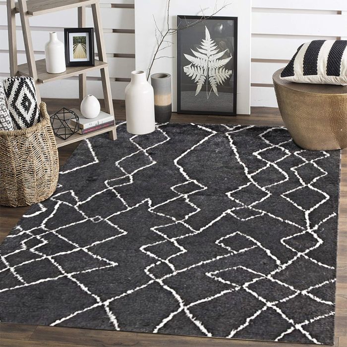 Made with Geometric design and Charcoal Black color represent Beni Ourain Modern carpet with Moroccan patterns. This rug is luxurious and perfect for every kind of home decor. Moroccan is a Hand spun wool made carpet which one of its kinds of rug. The thickness of this rug is 0.50 to.75 inch that feels amazingly soft beneath your feet. This rug is fully Handmade in India by Our best artisans.