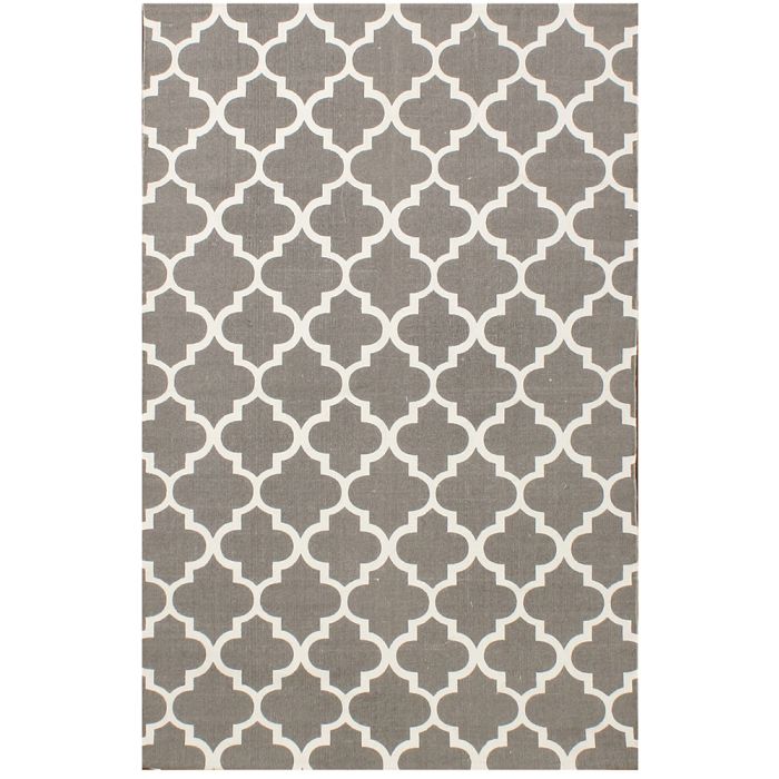 Description / Rugsville Moroccan Trellis Gray Cotton Dhurrie Carpet 21194