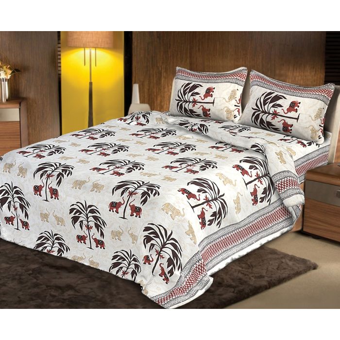 Enhance the beauty of your bedroom with Tree Print printed bedsheet in beautiful Brown colours,soft & comfortable Cotton from Rugsville Palm collection. The bedsheet is made from Fast Natural Dyes for durability & long lasting. Each set comes with 1 bedsheet and 2 pillow cover .