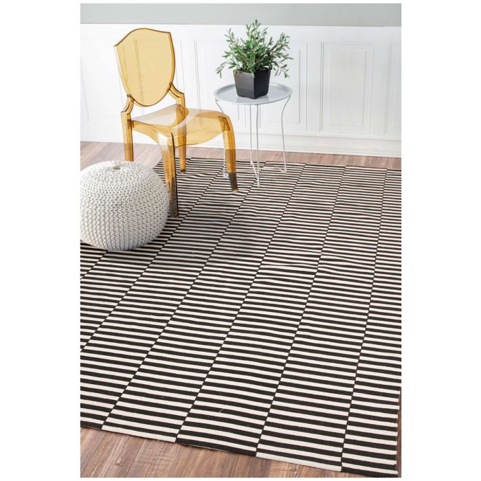 This handmade cotton Dhurrie features horizontal stripes of Black for a look that will tie together any room in your home. You'll love the comfortable and high quality Cotton that is tightly woven for a look that can't be beat.