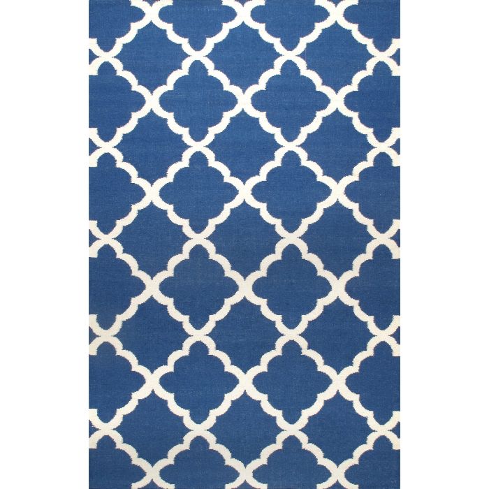 Description / Rugsville Trellis Blue Ivory Durries Carpet 5' x 8'