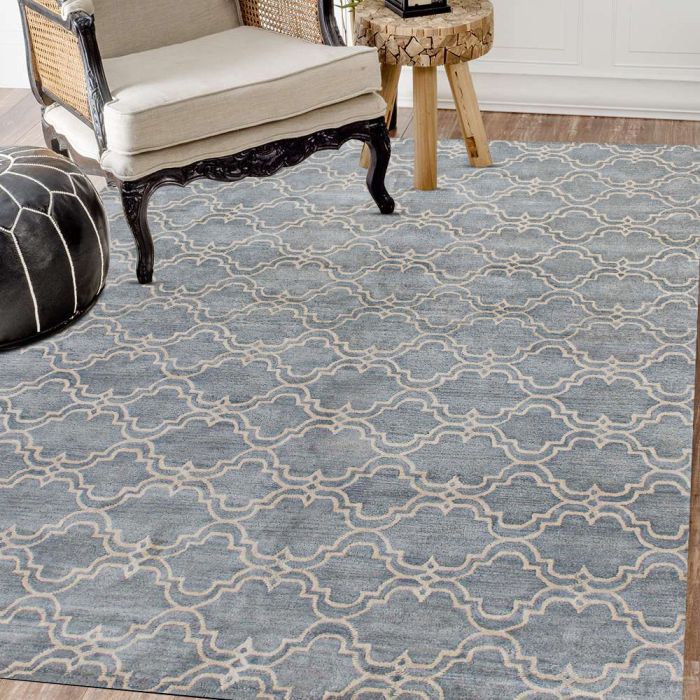 Description / Rugsville Scroll Tile Porcelain Blue Wool Carpet 10' x 14'