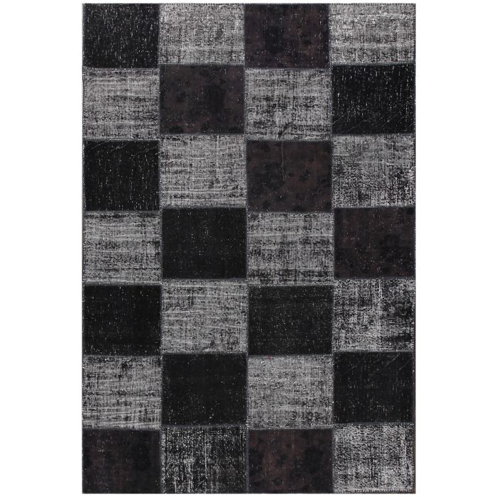 Rugsville Vintage style overdyed Black wool area rug collection brings popular Black patchwork looks to a Hand Knotted construction from Turkey, making the stylish designs durable and affordable. The colours vary throughout the rug due to the original wear and pattern of the segments. Each rug is a unique creation of colours and unique sizes. Phenomenally gorgeous, the patchwork rugs celebrate centuries of original antique Turkish and Persian carpets. Woven in the last 100 years, original antique carpets are cut and pieced by modern day artisans into a single pastiche of pattern and colour. This is an Atmosphere rug.