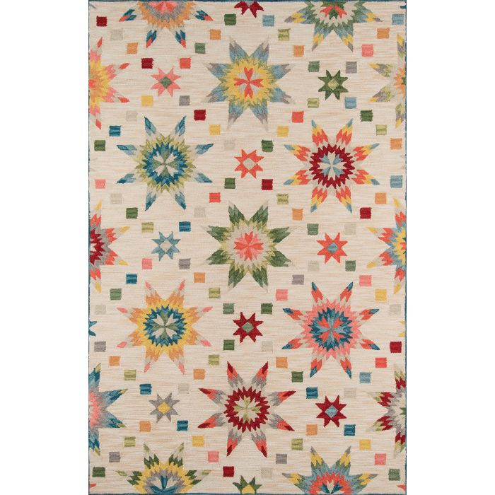 The Modern Stars motifs of this versatile area rug offer a light-hearted approach to luxe living. Patterns range in design and inspiration, from handheld fans of ancient Japan to the geometric tribal designs of the high desert, each captured in gorgeous shades of blue, red, green and gold. The ultimate combination of creativity and craftsmanship, hand-hooked construction and polyester pile bring out the saturated colors and sumptuous textures of each distinctive floorcovering design.