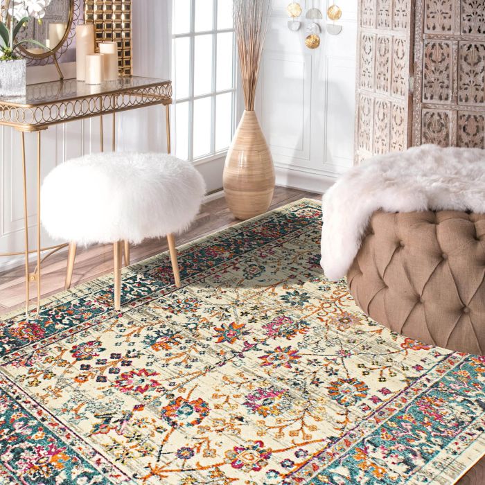 Rugsville Truong Vintage Ivory Floral Persian Rug 162 x 232 cm